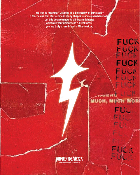 This symbol is named after - Freakstar, it’s an original symbol designed by our stu6io. It’s a fusion of a star and thunderbolt, meticulously crafted as our emblem of artistic rebellion and visionary spirit, the ultimate magic wand of all dreamers. On other note, it’s a star with a tail, which relate closely to the brand’s most iconic elements - care label, hanging at the back of shirt.